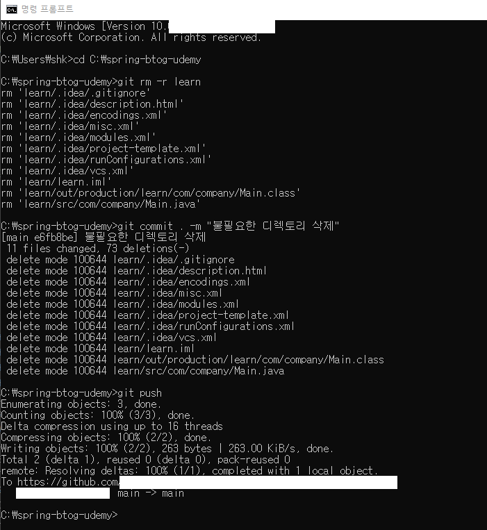깃 레포에 지우고자 하는 디렉터리가 있다면 사용하는 방법