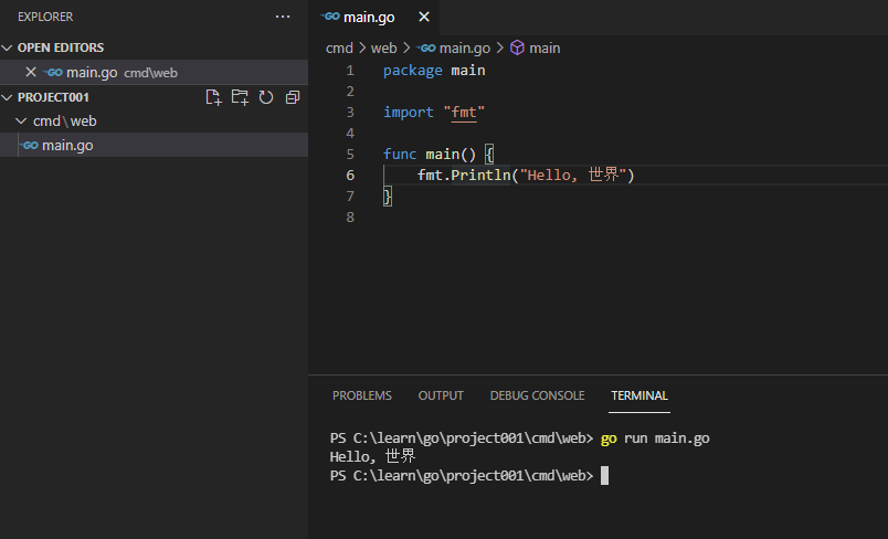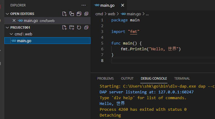main.go 파일을 만들었습니다.