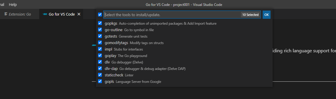 Go install/update tools를