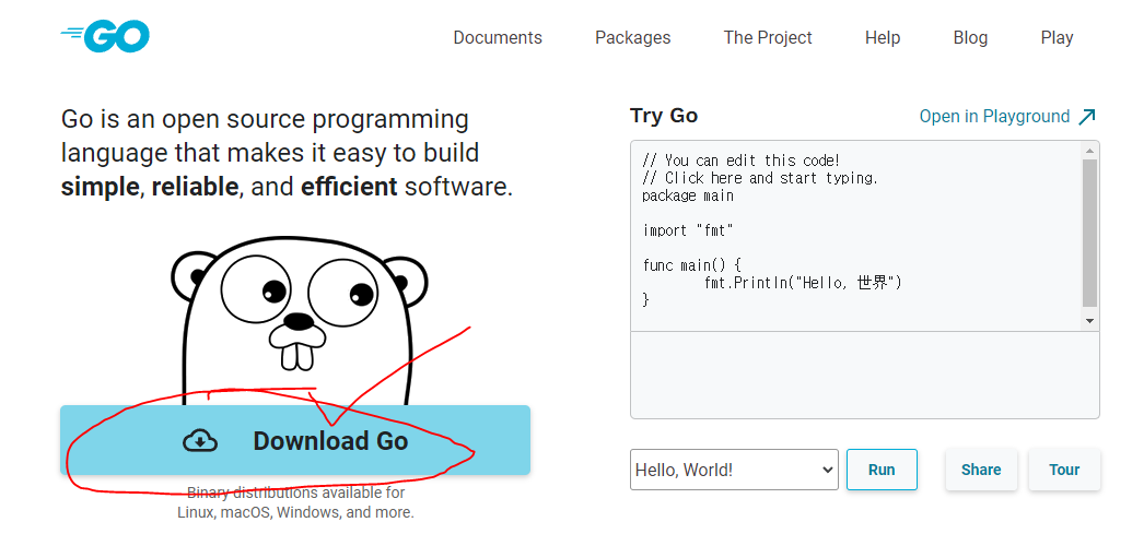 1.. Go 공식 사이트를 방문합니다.