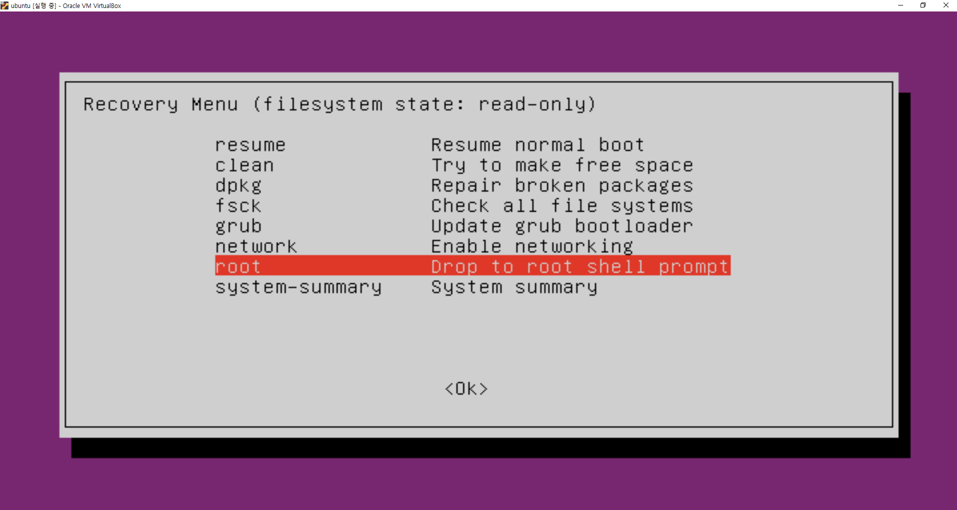 Recovery mode 선택