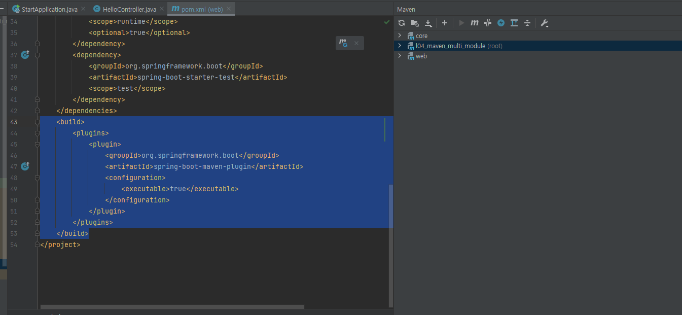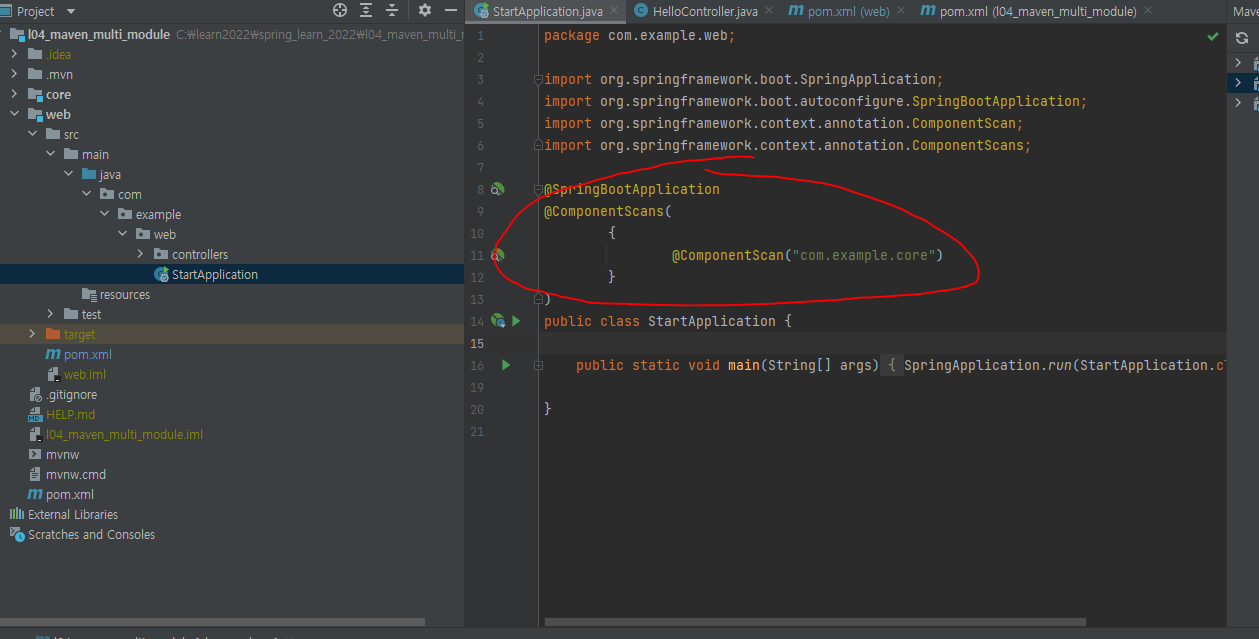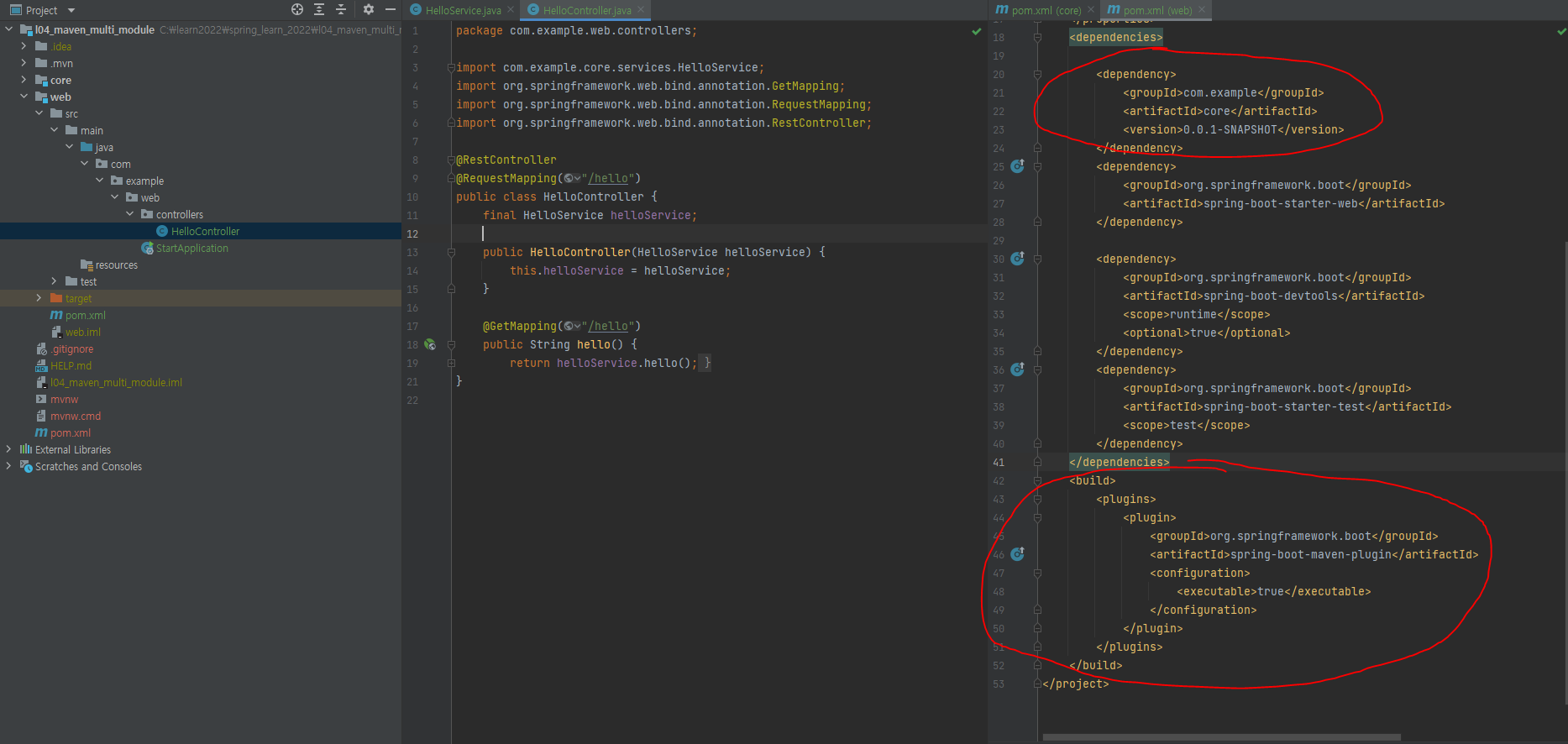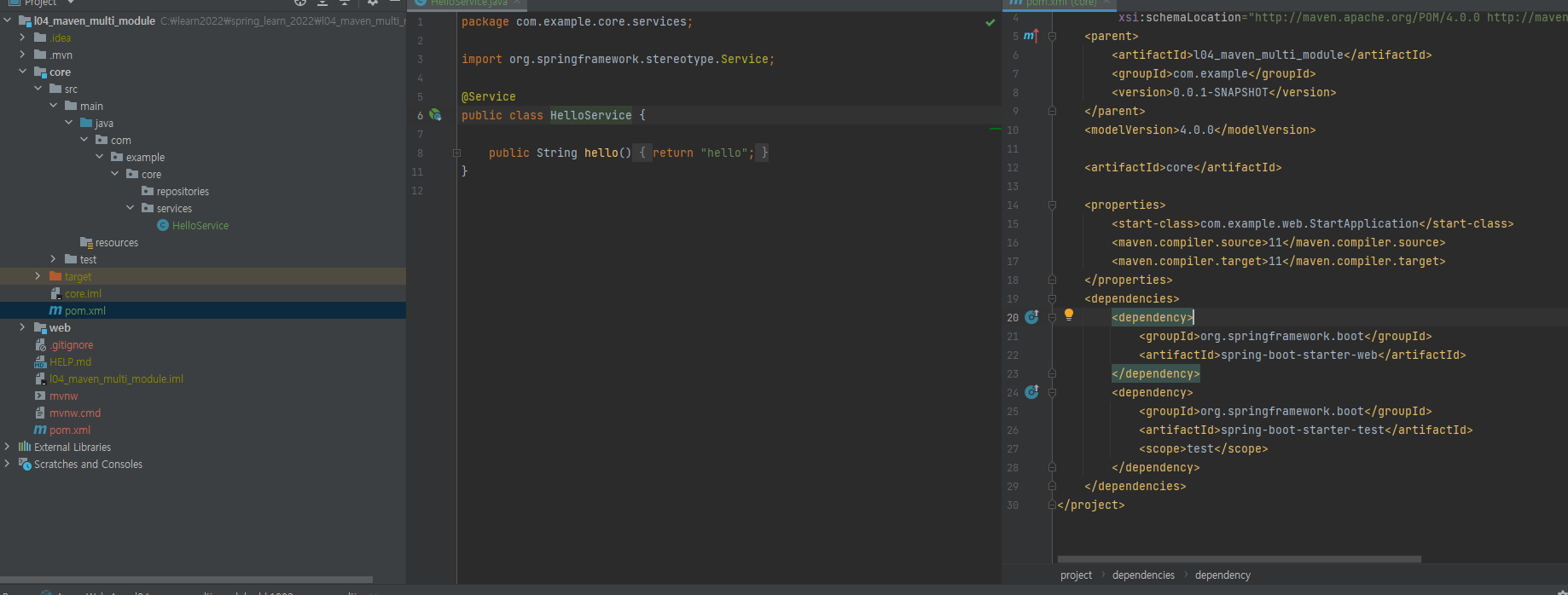 web 모듈은 core에 종속적입니다.