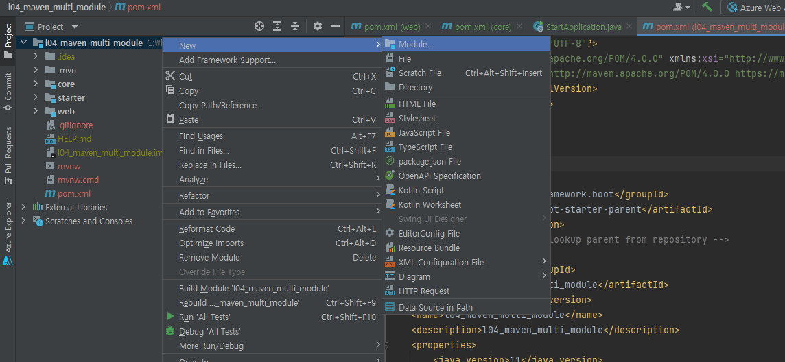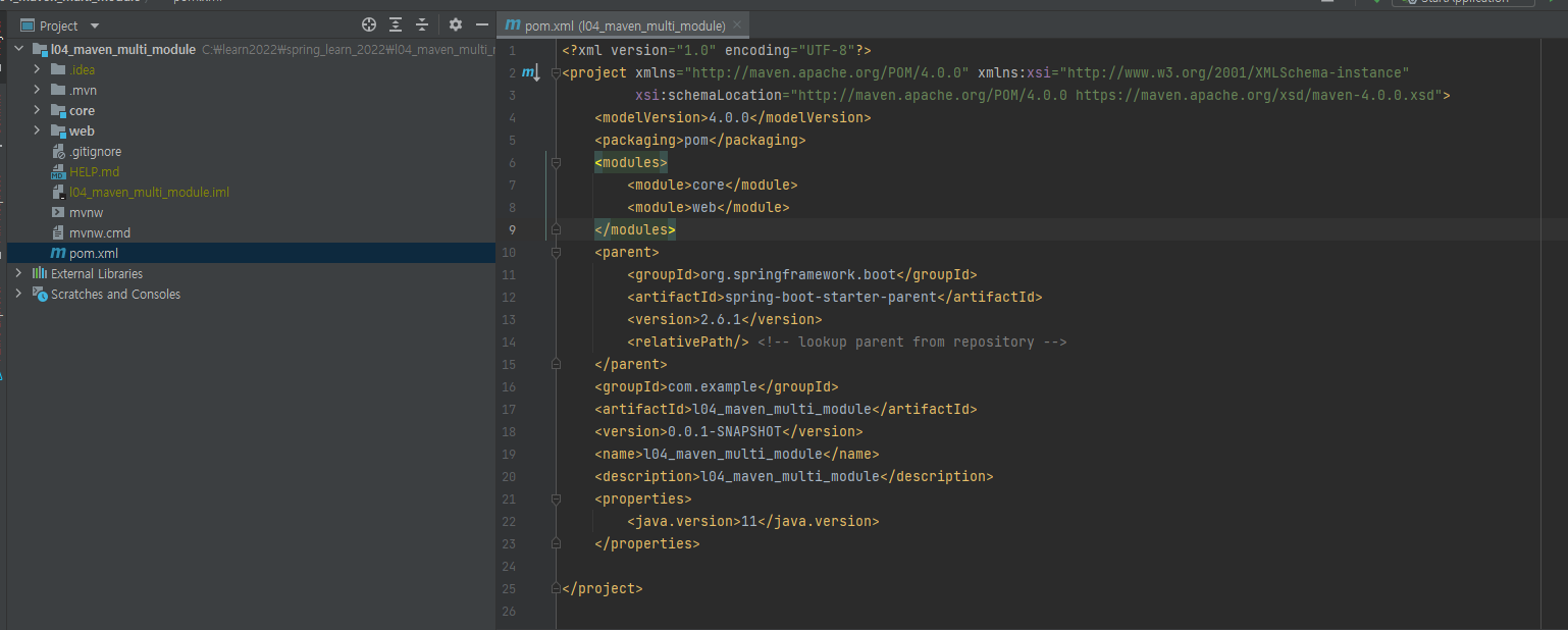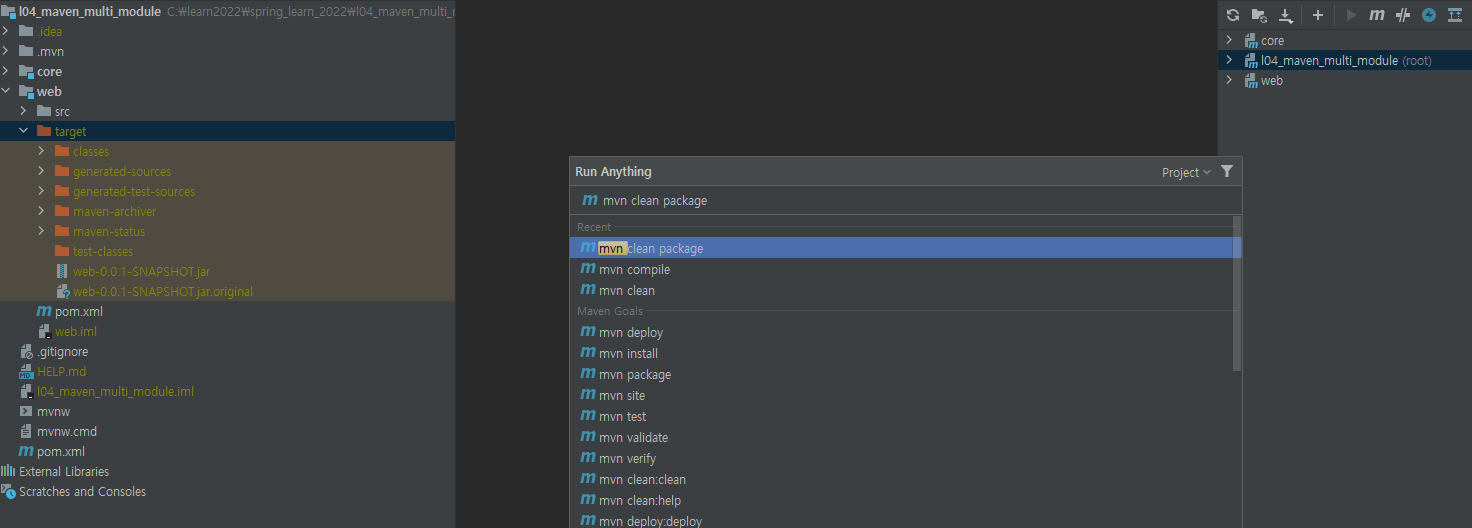 저는 core, web 모듈을 만들었고