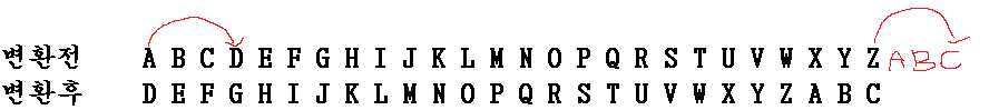 위에 그림처럼 키 만큼 문자열을 옆으로 쉬프트(밀어서) 문자열을 구해주는 방법입니다.