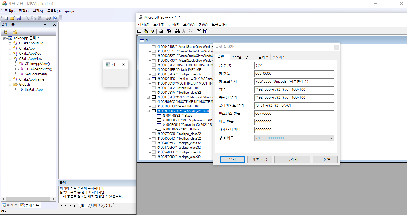 비쥬얼 스튜디오 도구-> SPY++를 사용해서 창을 분석해 보았다.
