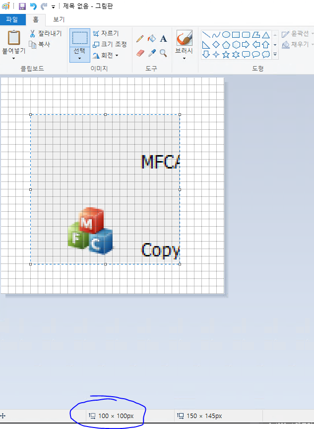 프레임 제거후 외부 사이즈를 100 X 100 픽셀로 정한 about 박스이다.