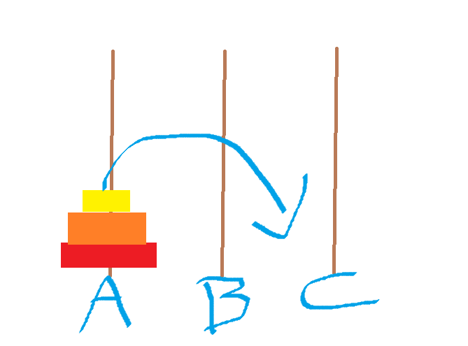 한개가 있을 경우 TOH(1) 이기 때문에 A->C로 한번 움직이면 됩니다.
