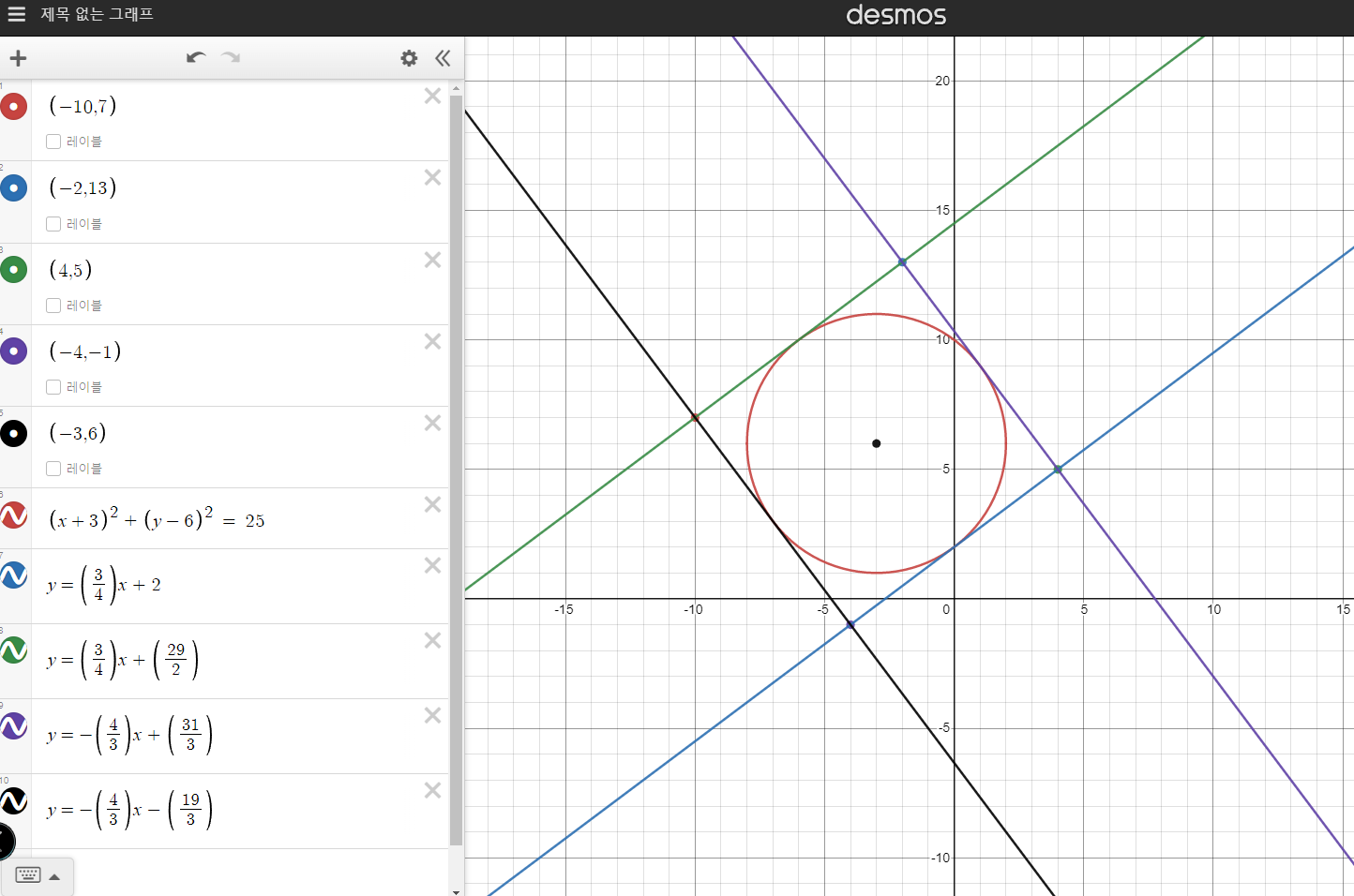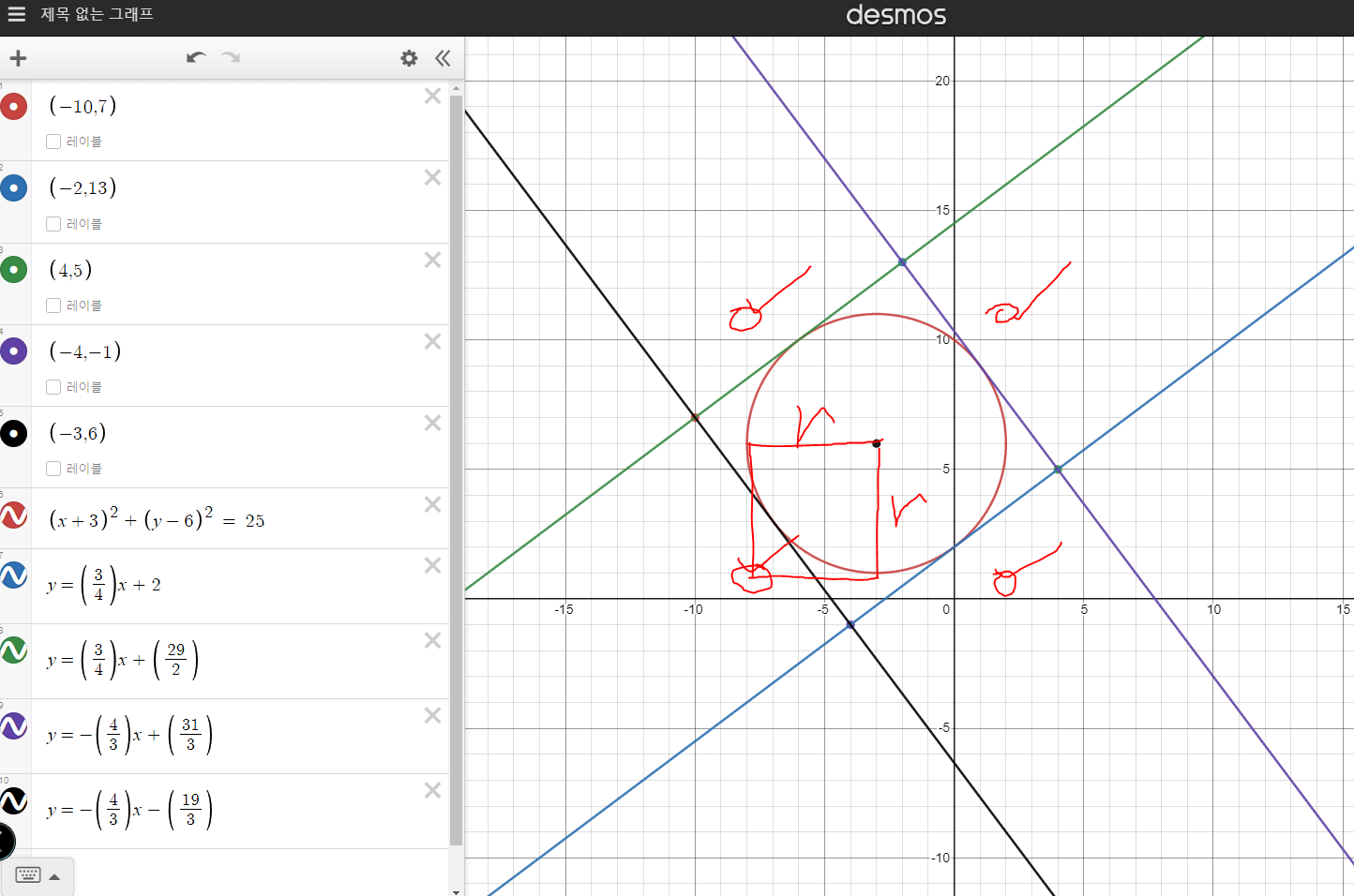 원의 중심 좌표, 원의 반지름이 주어질 때