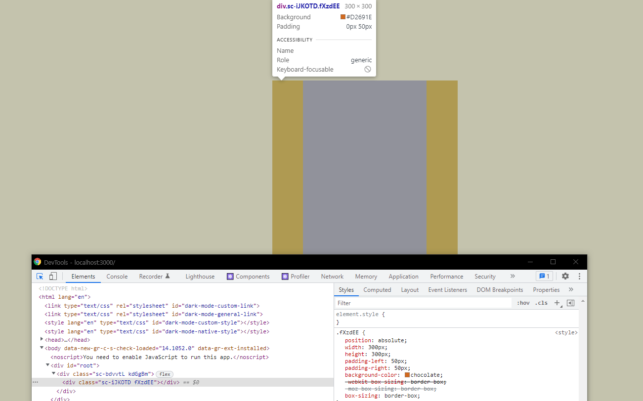 300px 너비의 div 안에 좌우 50px의 패딩을 주었는데 보시는 것과 같이