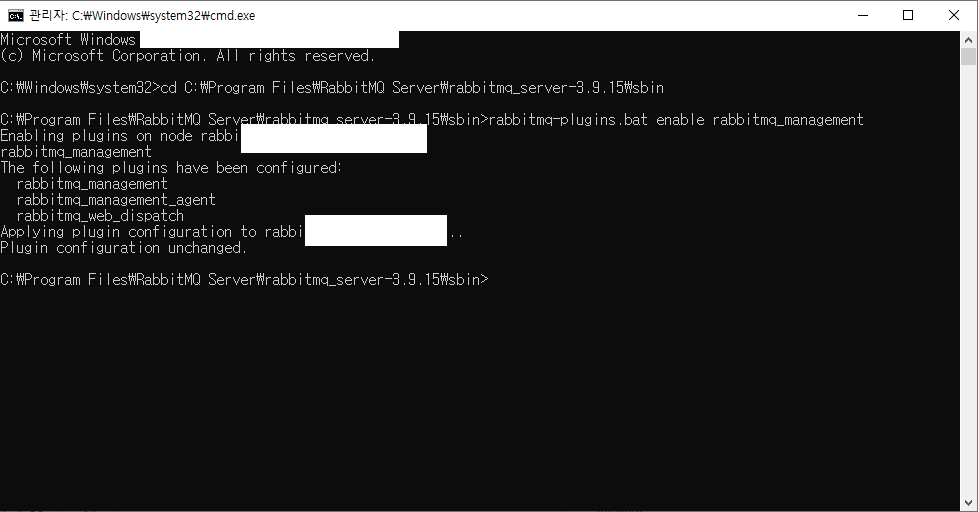 cd C:\Program Files\RabbitMQ Server\rabbitmq_server-3.9.15\sbin