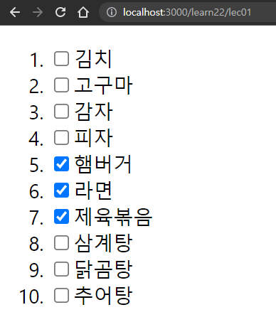 리액트에서 여러 체크박스들을 하나의 컴포넌트로 재활용 해보기