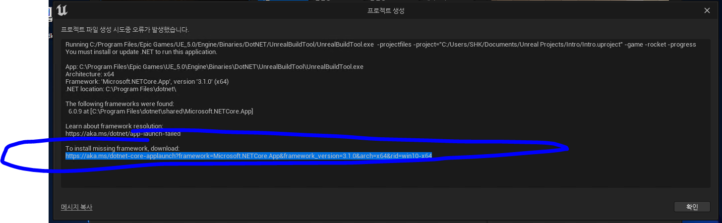 Unreal A fatal error occurred. The required library hostfxr.dll could not be found. 문제 해결 방법