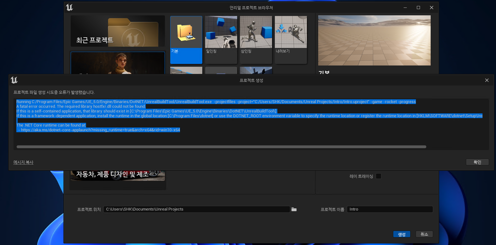 - Unreal A fatal error occurred. The required library hostfxr.dll could not be found. 문제 해결 방법