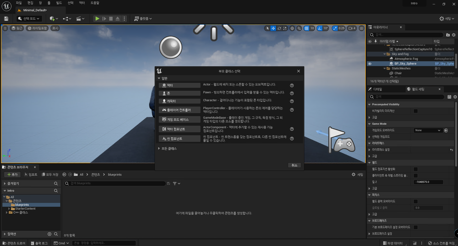 블루프린트 클래스를 생성해줍니다