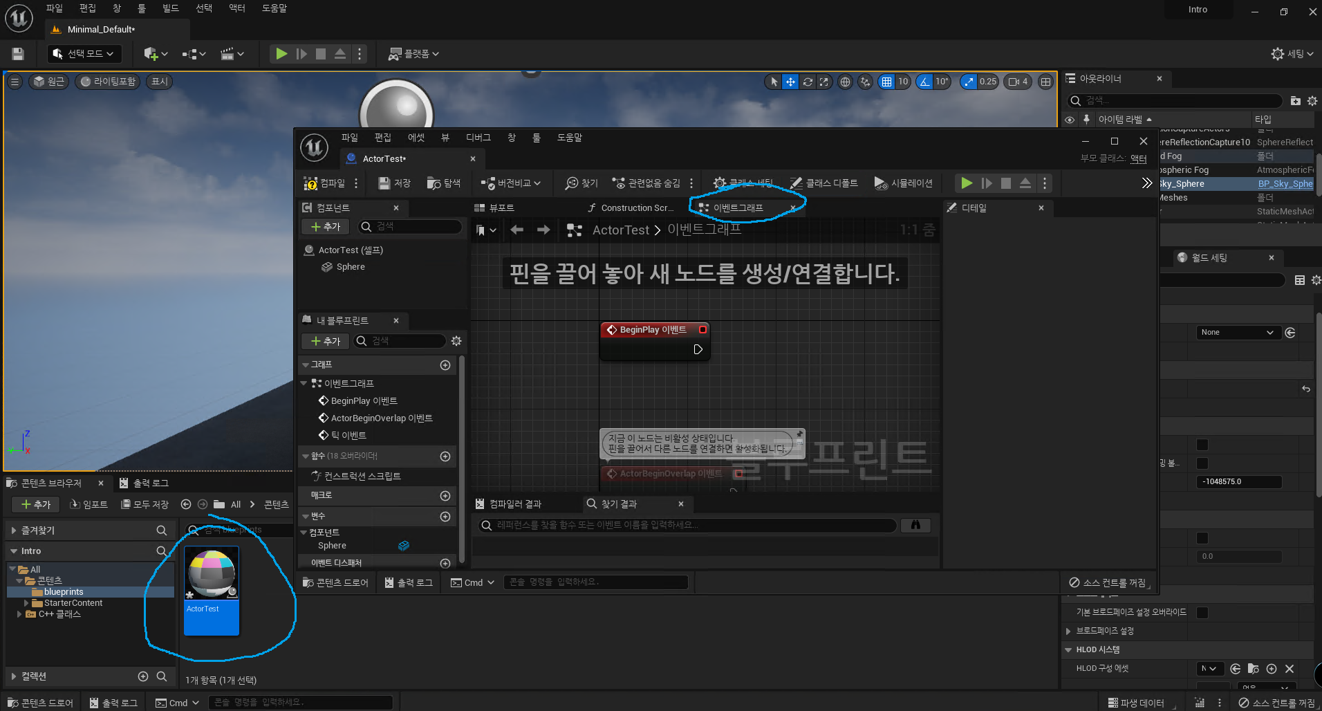 ActorTest BluePrint를 다시 클릭해서 연 다음