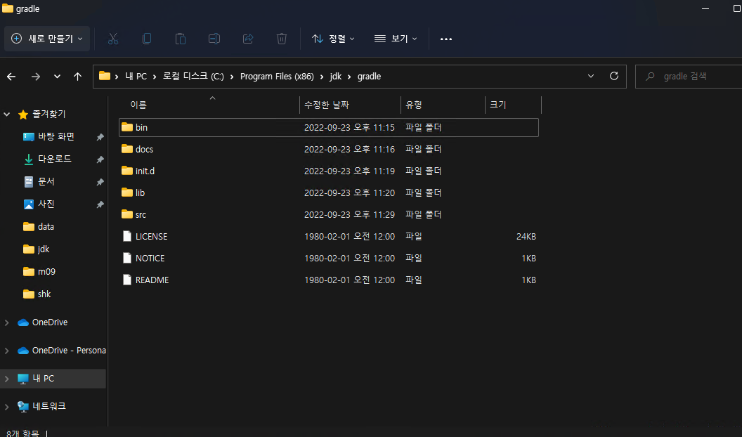 다운로드하신 Gradle 폴더의 압축을 원하시는 Directory에 풀어줍니다.