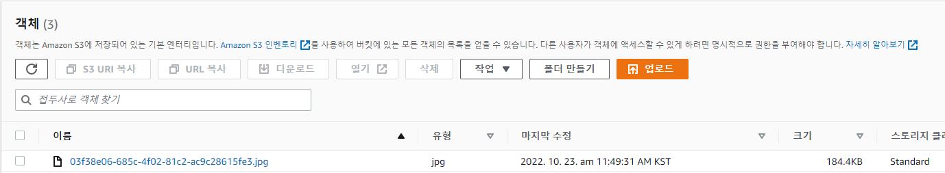 파일이 잘 올라간 것을 확인하였습니다.