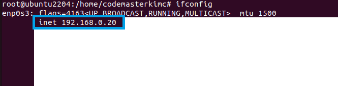 그다음에 ifconfig로 주소를 확인합니다