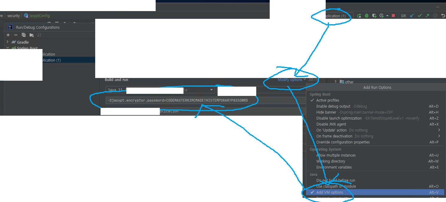 키값은 환경변수로 하셔도 되고 VM option에 주셔도 되는데