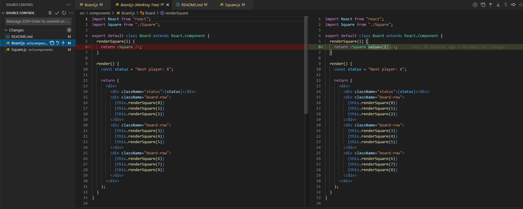 위와 같이 Square 컴포넌트 함수에서 value 값을 넣어줍니다.
