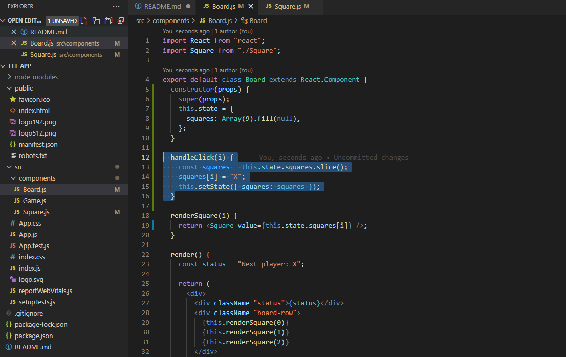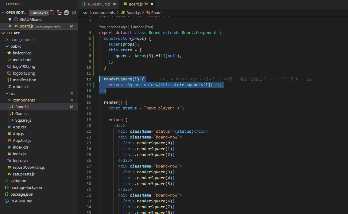 | 리액트로 틱택토 게임 만들면서 기초 배우기 # 3 (컴포넌트 틀 만들기) (0) | 2021.08.07 |