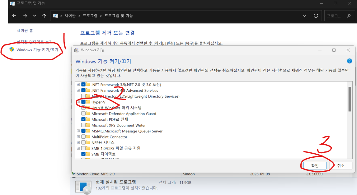 윈도우 기능 켜기/끄기에