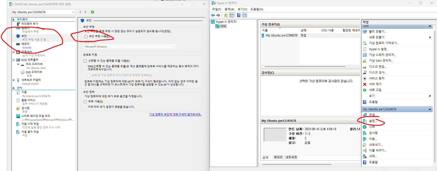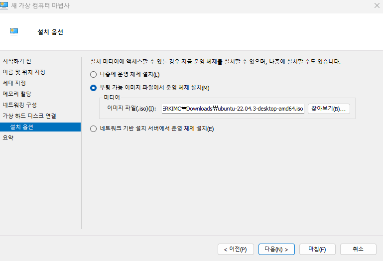 Hyper-V 관리자에서 다운로드한 운영체제 설치 및 실행