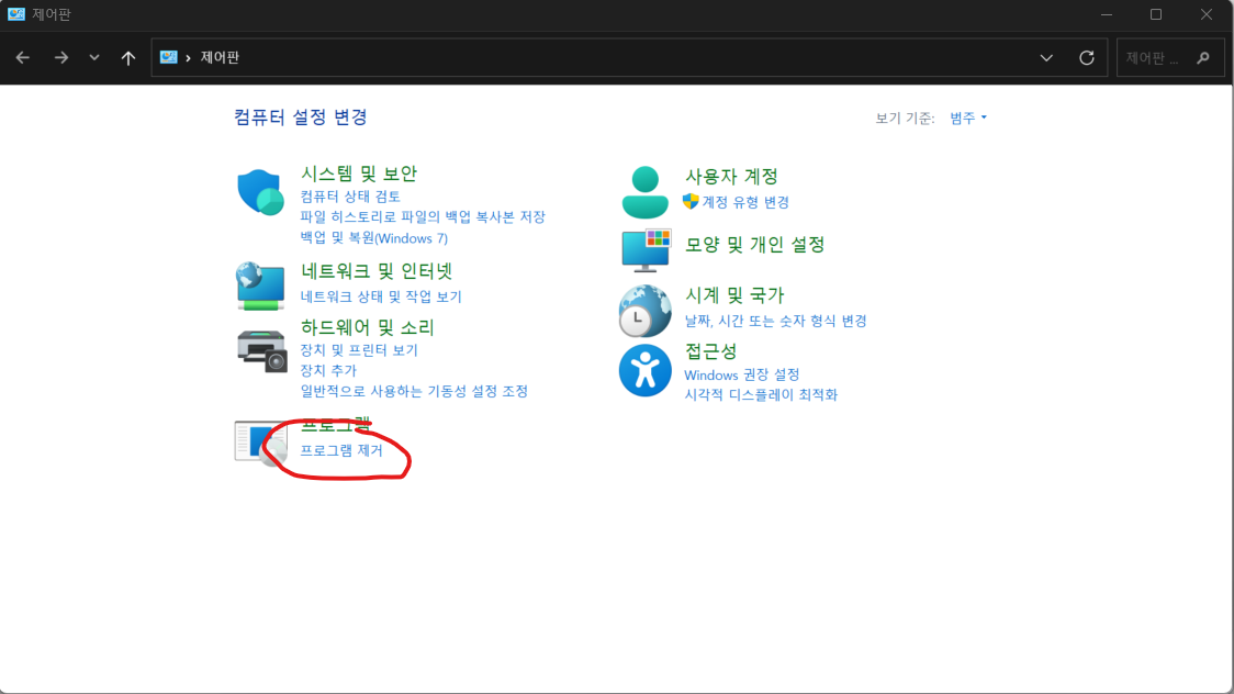 제어판 프로그램 및 기능열기