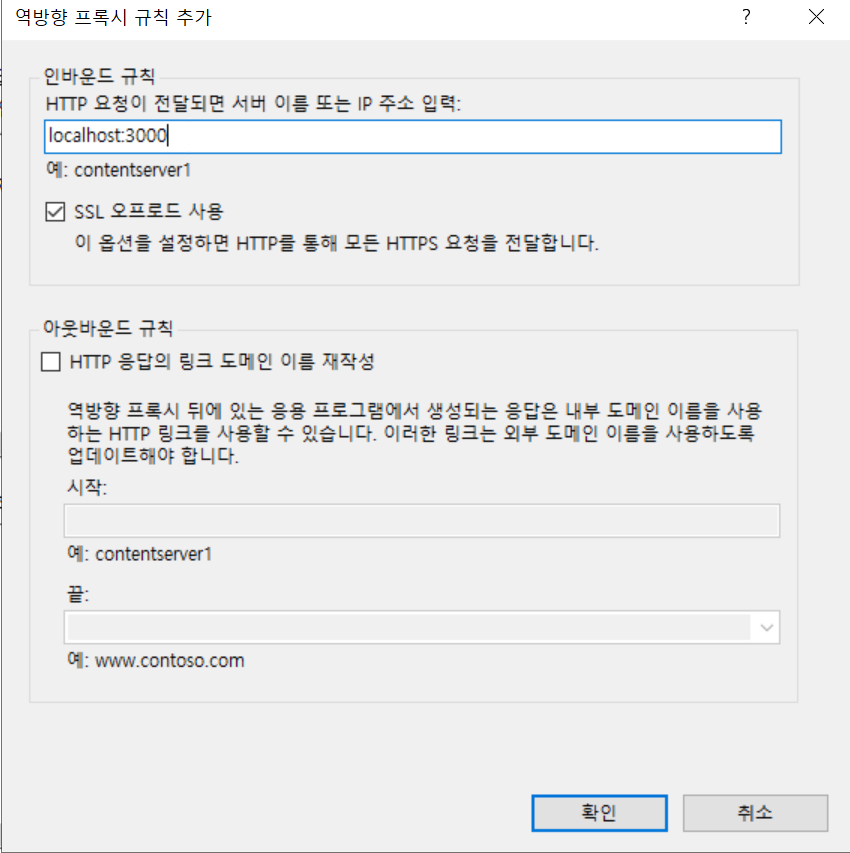 URL 재작성 -> 규칙추가 -> 역방향 프록시