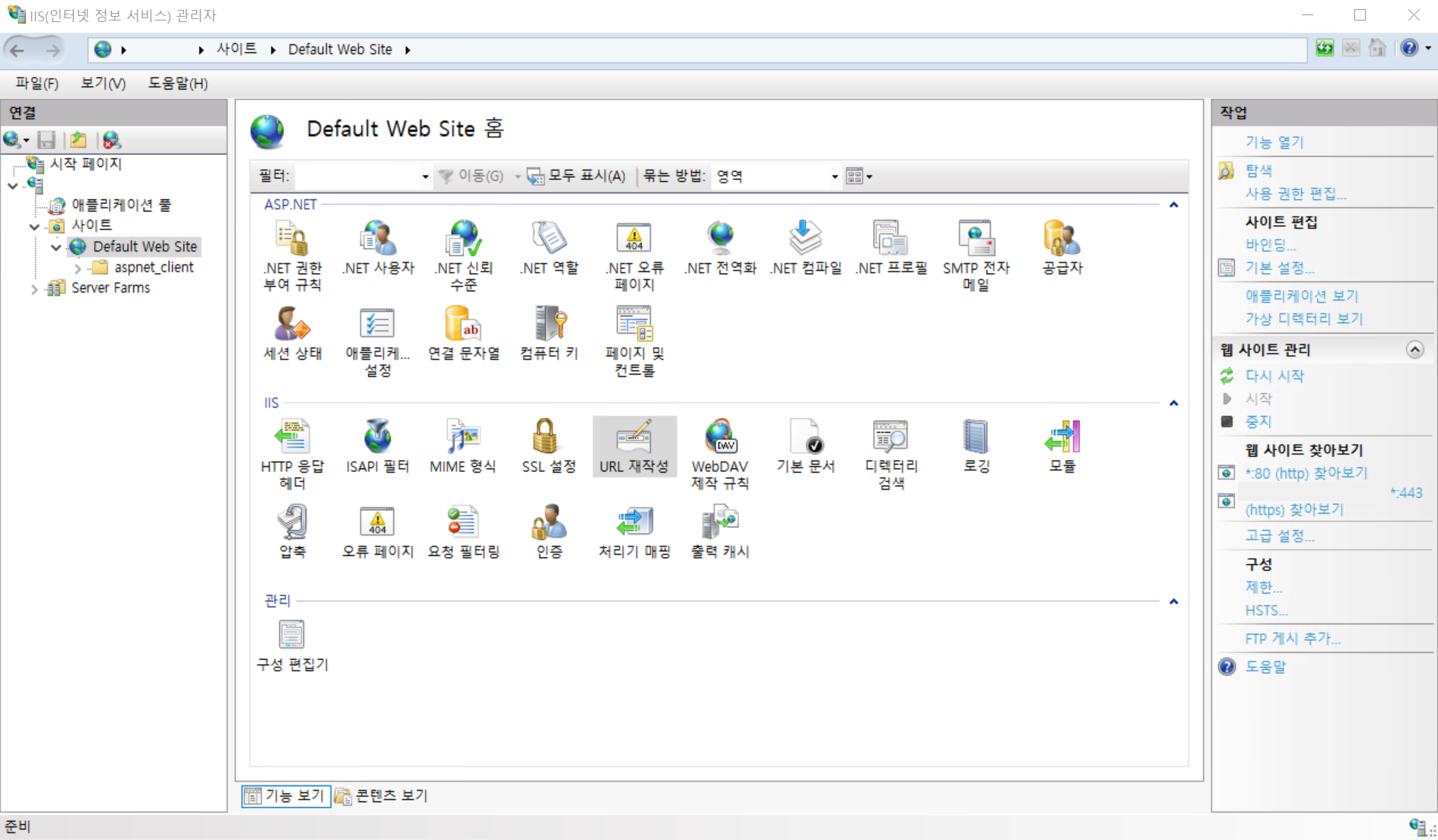 IIS-> 사이트-> 탐색 web.config 파일 수정