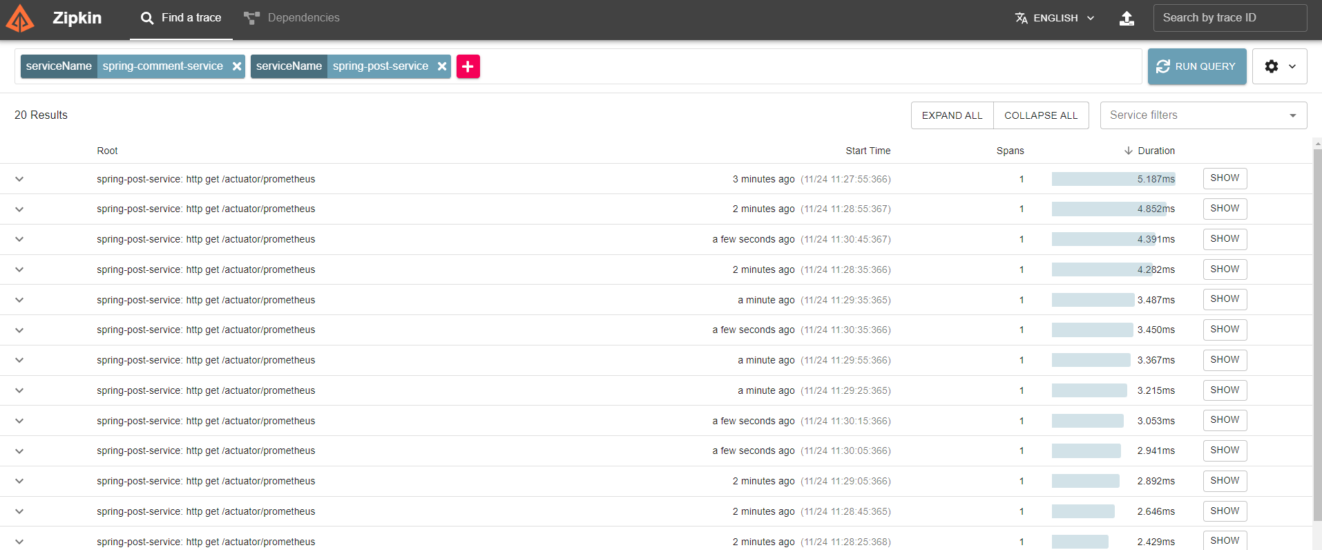Zipkin Post-Service, Comment-Service에서 api/v2/spans 로 연결