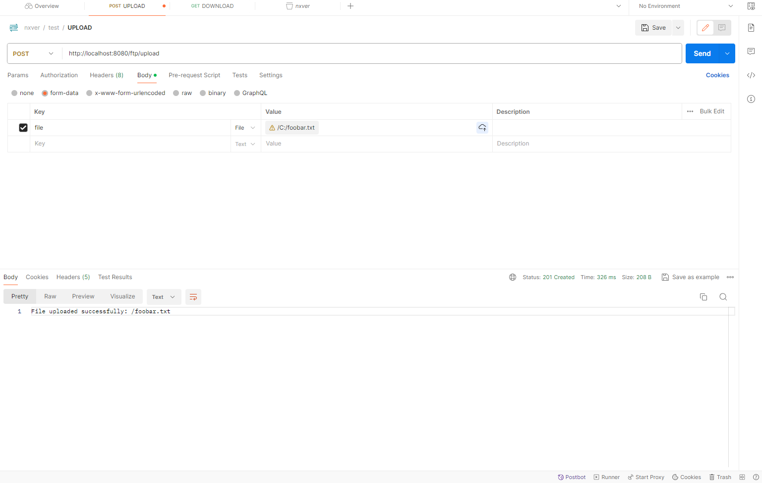 return ResponseEntity.status(HttpStatus.CREATED).body("File uploaded successfully: $remoteFilePath")