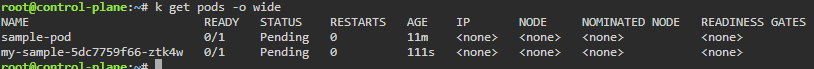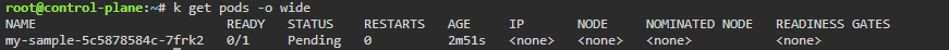node에 taint 값으로 인해 schedule이 안 돼서 pending입니다.