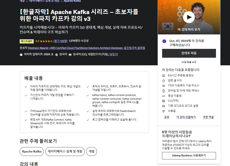 유데미의 다양한 강의를 통해 아파치 카프카에 대한 깊은 이해를 쌓아보세요. 이는 더 나은 개발자로 성장하는 데 큰 도움이 될 것입니다. :)