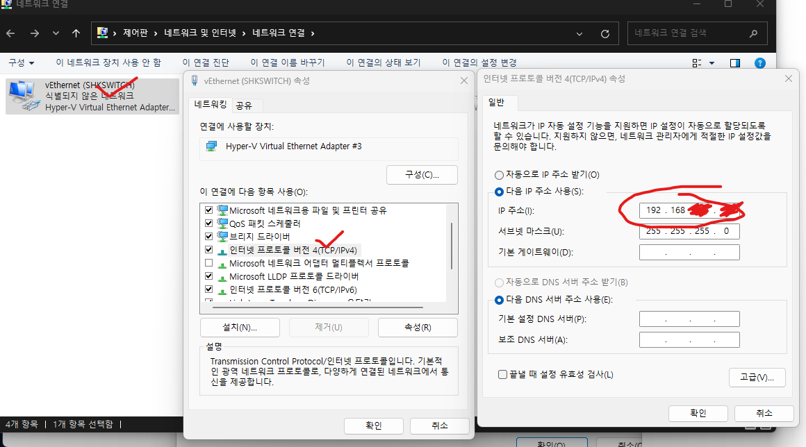 Hyper V에서 가상머신에 고정 아이피를 설치해 보겠습니다