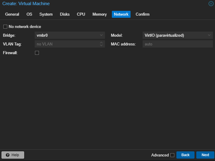 최신 운영 체제를 사용하는 경우 VirtIO를 선택하여 성능을 최적화하세요. 호환성 문제가 발생할 경우 E1000 또는 RTL8139를 고려할 수 있습니다.