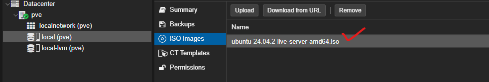local(pve) / ISO Images / Download from URL