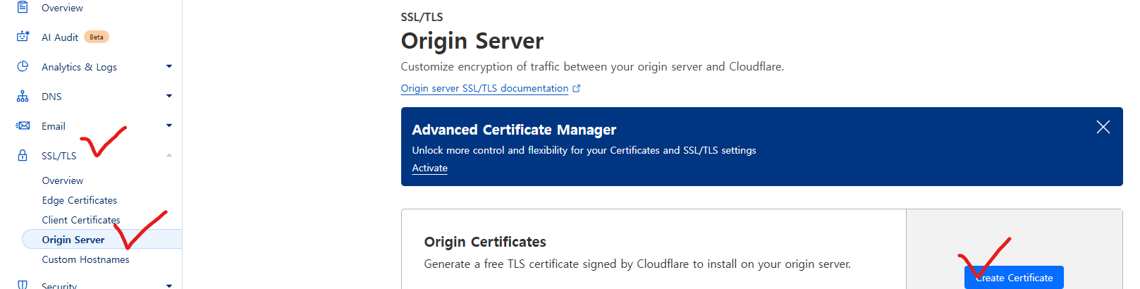 4. Cloudflare 인증서 생성
