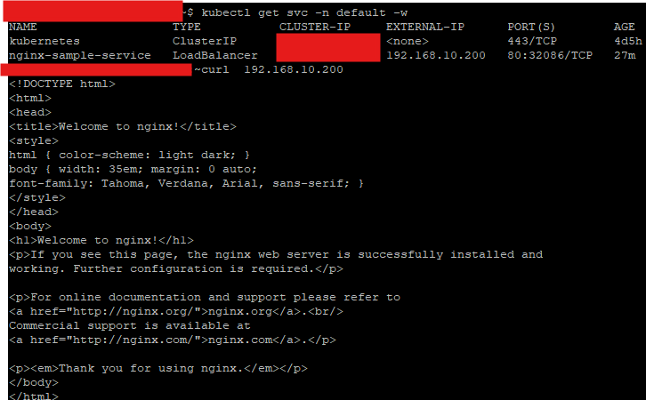 kubectl expose pod nginx-sample --port=80 --target-port=80 --type=LoadBalancer --name=nginx-sample-service -n default