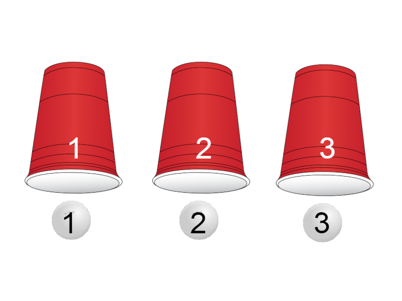 3개의 공이 3개의 컵안 번호 순서대로 있고
